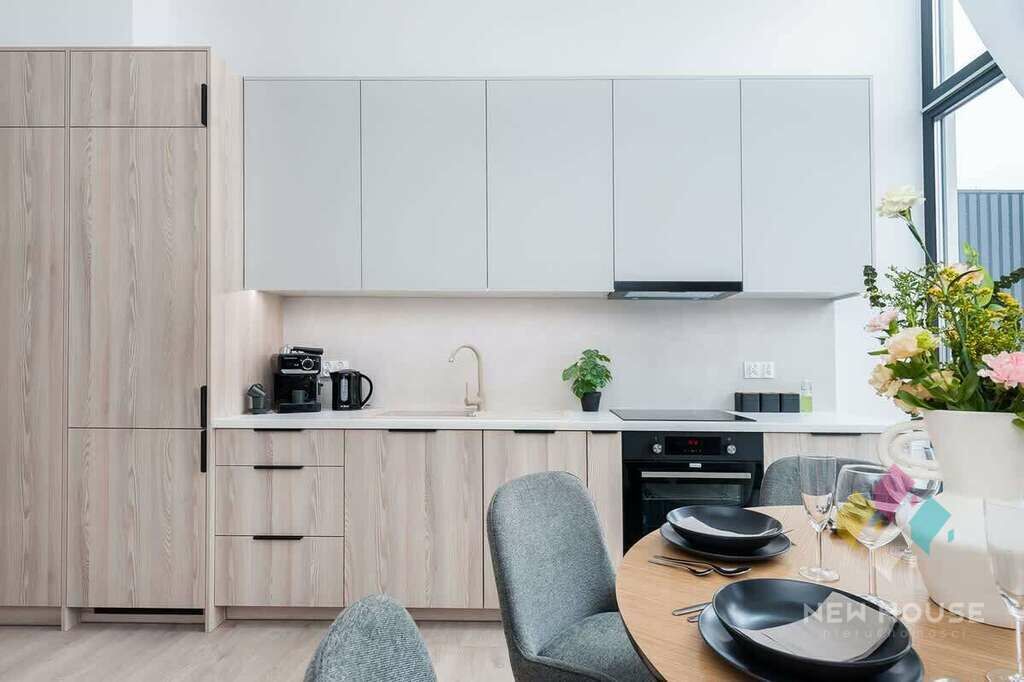 kuchennym, jest w pełni umeblowane i wyposażone, z zabudowami