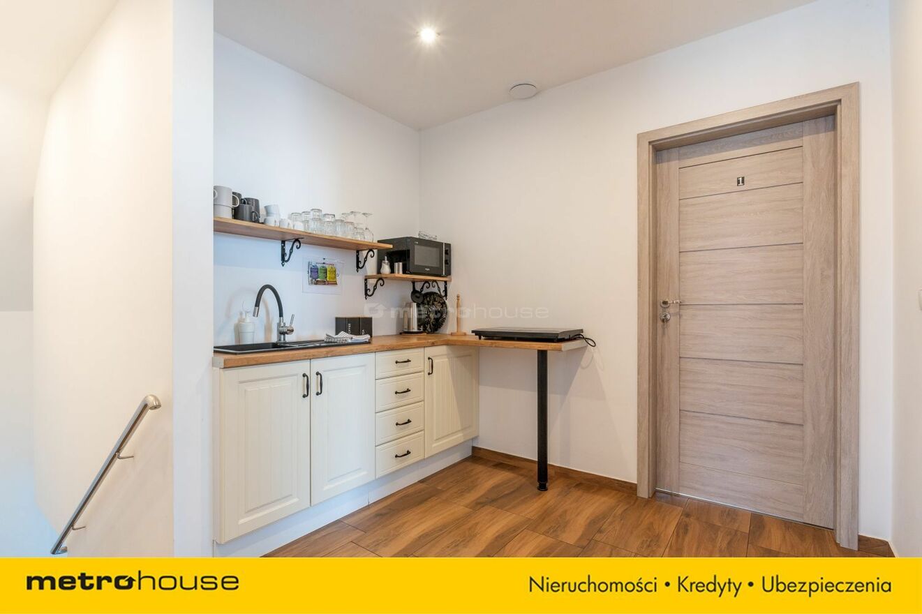 Korytarz z aneksem kuchennym, umożliwiający gościom przygotowanie prostych posiłków i napojów, co zwiększa atrakcyjność oferty wynajmu.