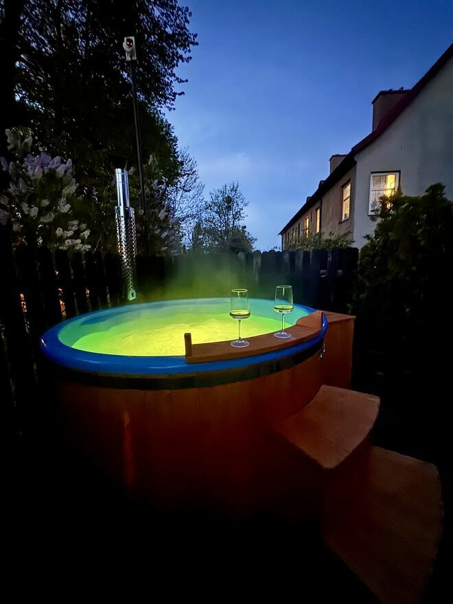 - Parter: 4 pokoje z łazienkami, kuchnia i wyście na patio z miejscem na grilla i jacuzzi.