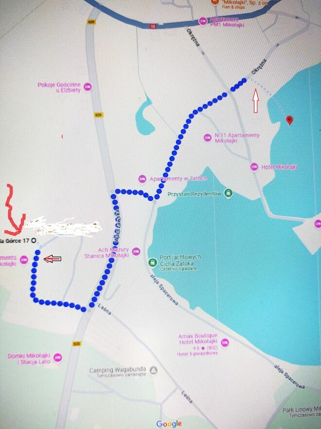Centrum Mikolajek/ promenada - ok. 8 min. pieszo ( spacerkiem romantyczna alejka wzdluz jeziora)